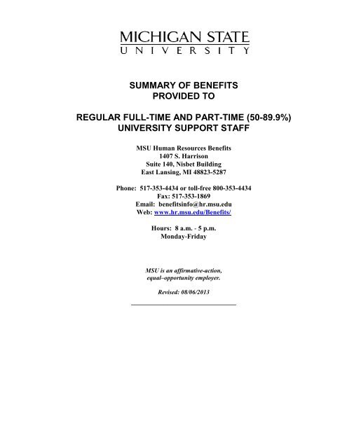 Summary Of Benefits Support Staff Msu Human Resources
